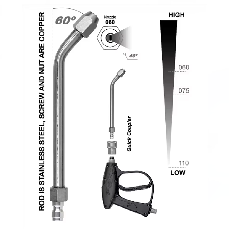 এই বাঁকানো অগ্রভাগের আকারের নকশা সঠিক, 60 ডিগ্রি বাঁকানো, আউটলেট হোল ডায়া .060 40 ডিগ্রি ডিজাইনের সাথে, এই বিশেষ কোণার নকশা পরিষ্কার করার জন্য এয়ার কন্ডিশনারটির সংকীর্ণ অভ্যন্তরীণ স্থানটিতে সহজেই পৌঁছতে পারে। অপারেশন খুব নমনীয় হতে পারে। অগ্রভাগের স্পেসিফিকেশন 060, এবং অগ্রভাগের কোণটি 40 ডিগ্রি, সুতরাং এটি পরিষ্কার অপারেশনে ফ্লাশিংয়ের জন্য উপযুক্ত জল প্রবাহ তৈরি করতে পারে। নীলফিস্ক এবং ডাব্লুএপি পরিষ্কার করার সরঞ্জামগুলির খুব বিখ্যাত ব্র্যান্ড। এই দুটি ব্র্যান্ডের ওয়াশিং বন্দুকের স্থিতিশীল উচ্চ-চাপের জলের প্রবাহ রয়েছে এবং এটি পরিষ্কারভাবে পরিষ্কার করা নিয়ন্ত্রণ করতে পারে, তাই এগুলি অনেক পরিস্থিতিতে পরিষ্কার করার কাজে ব্যাপকভাবে ব্যবহৃত হয়। জেনুইনস্কির বাঁকানো অগ্রভাগটি ওয়াপ/নীলফিস্ক বন্দুকের সাথে ফিট করে, তাই এটি উভয় পক্ষের সহযোগিতার সাথে এয়ার কন্ডিশনারটি সুবিধামত পরিষ্কার করতে পারে এবং এয়ার কন্ডিশনারটির অভ্যন্তরে ধুলা এবং ময়লা আরও দক্ষতার সাথে পরিষ্কার করতে পারে। এয়ার কন্ডিশনারটির অন-টাইম পরিষ্কার করা কেবল মানুষের জন্যই এটি স্বাস্থ্যের পক্ষে ভাল এবং এয়ার কন্ডিশনার নিজেই পরিষেবা জীবনও প্রসারিত করতে পারে।