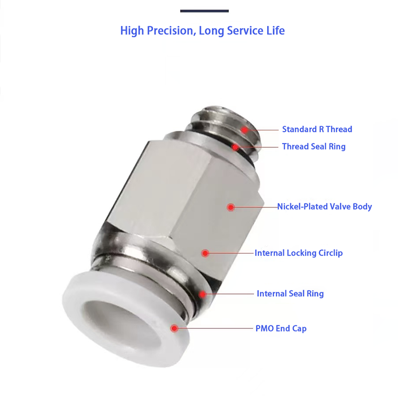অতএব, এমনকি দীর্ঘ সময়ের জন্য একটি আর্দ্র বা ধুলোময় পরিবেশের মুখেও, এটি স্থিতিশীল থাকতে পারে এবং মরিচা পড়া সহজ নয়, যা সংযোগের স্থায়িত্বকে প্রভাবিত করবে। অভ্যন্তরটি একটি বিশেষ অবতল সিলিং রিং গ্রহণ করে, যার একটি বৃহত্তর যোগাযোগের ক্ষেত্র রয়েছে, তাই ফিট বেশি এবং সিলিং আরও শক্তিশালী। একই সময়ে, পণ্যটি নিজেই সাধারণ শিল্প থ্রেডের স্ট্যান্ডার্ড R থ্রেড দিয়ে ডিজাইন করা হয়েছে। একই সময়ে, স্ট্যান্ডার্ড R থ্রেড এবং অভ্যন্তরীণ লকিং স্প্রিং এর সংমিশ্রণ অংশগুলির আলগা হওয়ার কারণে সৃষ্ট পরিধান এবং ফুটো এড়ায়, যা সিল করার কাজে দ্বিগুণ সুরক্ষা যোগ করতে পারে, যার অর্থ পণ্যটির পরিষেবা জীবন ব্যাপকভাবে প্রসারিত হয়। অবশেষে, মাইক্রো মিনি সংযোগকারী সিরিজের থ্রেডটি PTFE আঠা দিয়ে প্রি-কোটেড করা হয়। টেট্রাফ্লুরোইথিলিন, "প্লাস্টিকের রাজা" নামে পরিচিত একটি উপাদানের নিজেই খুব ভাল রাসায়নিক স্থিতিশীলতা এবং নির্দিষ্ট লুব্রিসিটি রয়েছে, যার অর্থ হল এটি শুধুমাত্র থ্রেডের সিলিং প্রভাবকে অপ্টিমাইজ করতে পারে না ফলস্বরূপ, এটি থ্রেডের পরিধানকে একটি নির্দিষ্ট পরিমাণে কমাতে পারে এবং পণ্যের পরিষেবা জীবনকে আরও প্রসারিত করতে পারে। এই পণ্যটির দুর্দান্ত সিলিং কার্যকারিতা রয়েছে, যাতে এটি বায়ুসংক্রান্ত সিস্টেমের উচ্চ-চাপের কাজের অবস্থার অধীনে উচ্চ-ফ্রিকোয়েন্সি কাজে "ড্রিপ-প্রুফ" এর সিলিং প্রভাব বজায় রাখতে পারে। মাইক্রো মিনি সংযোগকারী সিরিজের সহনশীলতার পরিসর নিজেই 0-60 ডিগ্রি সেলসিয়াসের তাপমাত্রা পরিসরে। উপরন্তু, সর্বাধিক নিশ্চিত চাপ 1.32MPa এ পৌঁছাতে পারে এবং স্বাভাবিক কাজের চাপের পরিসর হল 0-0.9MPa, যা বায়ুসংক্রান্ত সরঞ্জাম এবং স্বয়ংক্রিয় সিলিন্ডারের মতো উচ্চ-চাপের কাজের অবস্থার প্রয়োজন এমন সরঞ্জামগুলির স্থিতিশীল অপারেশনকে সম্পূর্ণরূপে কভার করতে পারে। একই সময়ে, জটিল কাজের অবস্থার অধীনে পাইপলাইন বিন্যাসের প্রয়োজনীয়তাগুলি কভার করার জন্য, থ্রটল ভালভ সহ জয়েন্টটি 360° ঘূর্ণন সামঞ্জস্যকে সমর্থন করে, যার অর্থ এটি ঐতিহ্যগত জয়েন্ট অ্যাঙ্গেল ফিক্সেশনের সীমাবদ্ধতা ভঙ্গ করতে পারে এবং শ্বাসনালীর দিকটি সরঞ্জামের ইনস্টলেশনের স্থান অনুসারে অবাধে সামঞ্জস্য করা যেতে পারে। অবশেষে, পণ্যের সংযোগটিও দ্বৈত উপায়ে। এটি থ্রেড শক্ত করে সংযুক্ত করা যেতে পারে, অথবা এটি সরাসরি-প্লাগ সংযোগও হতে পারে। সরাসরি প্লাগ-ইন টাইপ শ্বাসনালী লক করা সমর্থন করতে পারে, এবং শেষ কভার টিপে টিউব টানা হতে পারে. এই সহজ সংযোগ পদ্ধতিটি কাজের দক্ষতাকে ব্যাপকভাবে উন্নত করে এবং ইনস্টলেশন এবং বিচ্ছিন্ন করার সময় বাঁচায়। জেনুইনস্কি উচ্চ নির্ভুলতা, দীর্ঘ জীবন এবং নির্ভুল তরল সংক্রমণের জন্য শক্তিশালী স