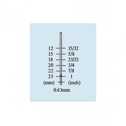এমপি 625 এ এয়ার মাইক্রো পিনারের জন্য পেরেক বা পিনের আকারটি ছোট এবং পাতলা, আকার 12-25 মিমি (15/32 থেকে 1 ইঞ্চি), জিএ 23, ডায়া। 0.63 মিমি।