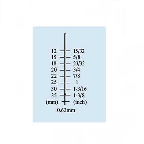 এমপি 635 এয়ার মাইক্রো পিনারের জন্য পেরেক বা পিনের আকারটি ছোট এবং পাতলা, আকার 12-35 মিমি (15/32 থেকে 1-3/8 ইঞ্চি), জিএ 23, ডায়া। 0.63 মিমি।