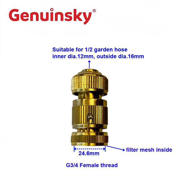 প্রেসার ওয়াশার ইনলেট সংযোগকারী হ'ল উচ্চ-চাপ ওয়াশারের জল খাঁড়ি প্রান্তের একটি সংযোগকারী অংশ যা দৈনন্দিন জীবনে প্রচুর ব্যবহৃত হয়। এটি 1/2 বাগানের পায়ের পাতার মোজাবিশেষ, অভ্যন্তরীণ ডায়া .12 মিমি, ডায়া 6 মিমি এর বাইরে, অন্য প্রান্তটি 24.6 মিমি ব্যাস সহ জি 3/4 মহিলা থ্রেডের জন্য উপযুক্ত এবং ভিতরে একটি ফিল্টার জাল রয়েছে।