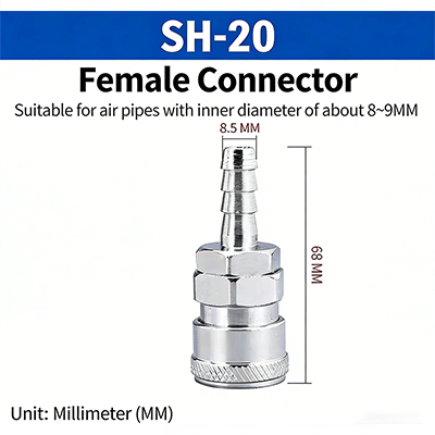 জেনুইনস্কির পিএইচ-এসএইচ সিরিজের সি-টাইপ কুইক কাপলিংস-এ JIS PT থ্রেডের সাথে একটি সি-টাইপ কুইক-কানেক্ট স্ট্রাকচার রয়েছে, যা পুরুষ ও মহিলা সংযোগকারীকে অবাধে জোড়া লাগানোর অনুমতি দেয়। ইলেক্ট্রোপ্লেটেড পৃষ্ঠ এবং পিতল ভালভ কোর পণ্যটির স্থায়িত্ব বাড়ায়। চীনে বায়ুসংক্রান্ত সরঞ্জাম আনুষাঙ্গিক পেশাদার সরবরাহকারী হিসাবে, Genuinsky একটি মানসম্মত পদ্ধতিতে তার পণ্য উত্পাদন করে। এই সিরিজটি বিভিন্ন বায়ুসংক্রান্ত পাইপলাইনের সাথে সুনির্দিষ্ট মিল সক্ষম করে, স্পেসিফিকেশনের সম্পূর্ণ পরিসীমা অফার করে।