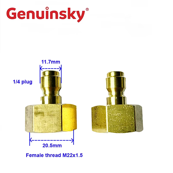 এই পণ্যটি একটি দ্রুত প্লাগ 1/4 ইঞ্চি মহিলা থ্রেড এম 22 সংযোজক, এক প্রান্তে 1/4 প্লাগ সহ 11.7 মিমি ব্যাস সহ, এবং অন্য প্রান্তে একটি মহিলা থ্রেড এম 22 × 1.5, 20.5 মিমি ব্যাস সহ, যা উচ্চ-চাপের ওয়াশারের পরিষ্কার সরঞ্জামের জন্য উপযুক্ত।