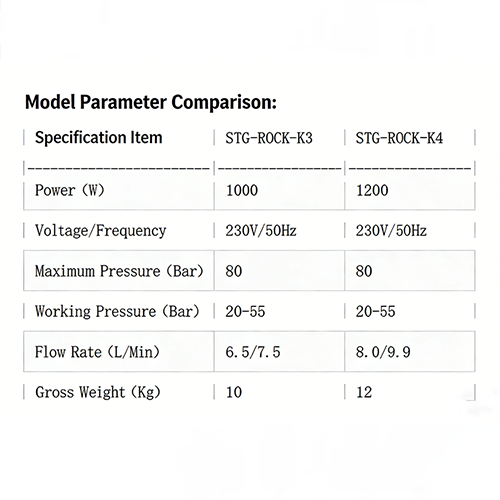 প্রথমত, K3 এবং K4 এর কিছু কর্মক্ষমতা পরামিতি তুলনা করুন। উভয় মডেল অ্যালুমিনিয়াম খাদ উচ্চ চাপ পাম্প সঙ্গে সজ্জিত করা হয়. এই উপাদানের সুবিধা হল জারা প্রতিরোধের, স্থায়িত্ব এবং উচ্চ কর্মক্ষমতা। একই সময়ে, তাদের উভয়েরই কম-আওয়াজ ইন্ডাকশন মোটর রয়েছে। পার্থক্য হল K3 এর শক্তি হল 1000W এবং K4 এর শক্তি হল 1200W, যা দক্ষতার সাথে চালানোর সময় কম শব্দ হয়। , বাড়ির ব্যবহারের পরিস্থিতিতে প্রতিবেশীদের বিরোধ সৃষ্টি করা সহজ নয়। উভয় মডেলের ভোল্টেজ/ফ্রিকোয়েন্সি হল 230V/50Hz, সর্বোচ্চ চাপ হল 80Bar, এবং কাজের চাপ 20-55Bar-এ পৌঁছতে পারে৷ পার্থক্য হল K3 মডেলের প্রবাহের হার হল 6.5/7.5L/মিনিট, এবং K4 মডেলের প্রবাহের হার হল 8.0/9.9L/মিনিট৷
