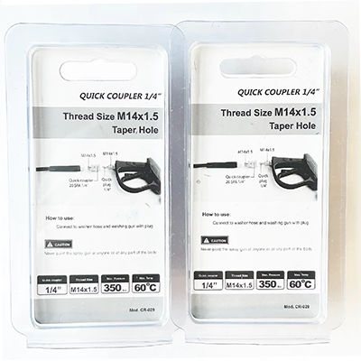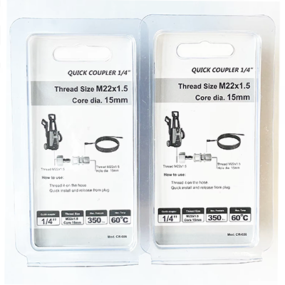এই দুটি স্পেসিফিকেশনের 1/4 কাপলারের বিভিন্ন আকারের নকশা রয়েছে। একটি হ'ল এম 22 × 1.5, 22 মিমি ব্যাস সহ, যার মধ্যে মূল ডায়া .15 মিমি। অন্যটি হ'ল এম 14 × 1.5, 14 মিমি ব্যাস এবং একটি টেপার গর্ত সহ। পণ্যের দুটি আকারের নকশা খুব সুনির্দিষ্ট, যা প্রাসঙ্গিক ম্যাচিং ক্লিনিং মেশিনগুলির সাথে সঠিকভাবে মানিয়ে নেওয়া যেতে পারে এবং উচ্চ চাপ ধোয়া বন্দুকের পায়ের পাতার মোজাবিশেষ সংযোগকারীগুলির জন্য ব্যবহৃত হতে পারে। পণ্যের উপাদান নিজেই পিতল। ব্রাসের উপাদানের ভাল জারা প্রতিরোধের রয়েছে। উচ্চ-চাপ পরিষ্কার করার কাজ প্রায়শই একটি আর্দ্র পরিবেশের মুখোমুখি হওয়া প্রয়োজন। অতএব, পণ্যটির জারা প্রতিরোধের নিজেই অনেক কঠোর পরিশ্রমী পরিবেশে সাধারণত কাজ করতে পারে। একই সময়ে, ব্রাসের ভাল নমনীয়তা এবং কঠোরতা রয়েছে এবং উচ্চ-চাপের জল প্রবাহে পণ্যটির স্থায়িত্ব নিজেই প্রভাবের মধ্যেও বজায় রাখা যায় এবং এটি ভাঙ্গা সহজ নয়, ফলে জল ফাঁস হয় এবং সরঞ্জামগুলি প্রতিস্থাপনের ব্যয় হ্রাস করে COM কমনের ব্যবহারের দৃশ্যাবলী, শিল্প সরঞ্জাম পরিষ্কারের বা আউটডোরের পরিচ্ছন্নতার অন্তর্ভুক্ত। এই পরিষ্কার প্রক্রিয়া চলাকালীন, ইনস্টলেশন বা বিচ্ছিন্নতা দ্রুত চালিত করা যেতে পারে। ব্যবহারকারীরা সরঞ্জামগুলির সহায়তা ছাড়াই দ্রুত সংযোগের কাজটি সম্পন্ন করতে পারেন, যা কাজের দক্ষতার উন্নতি করে এবং সময় সাশ্রয় করে। একই সময়ে, এই দুটি স্পেসিফিকেশনের 1/4 কাপলারের আকারও খুব উপযুক্ত us ব্যবহারকারীরা সহজেই এবং নমনীয়ভাবে এক হাত দিয়ে সংযোগ অপারেশন সম্পূর্ণ করতে পারে।